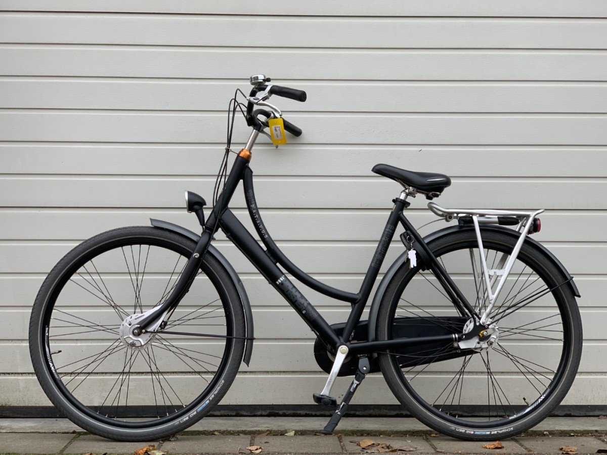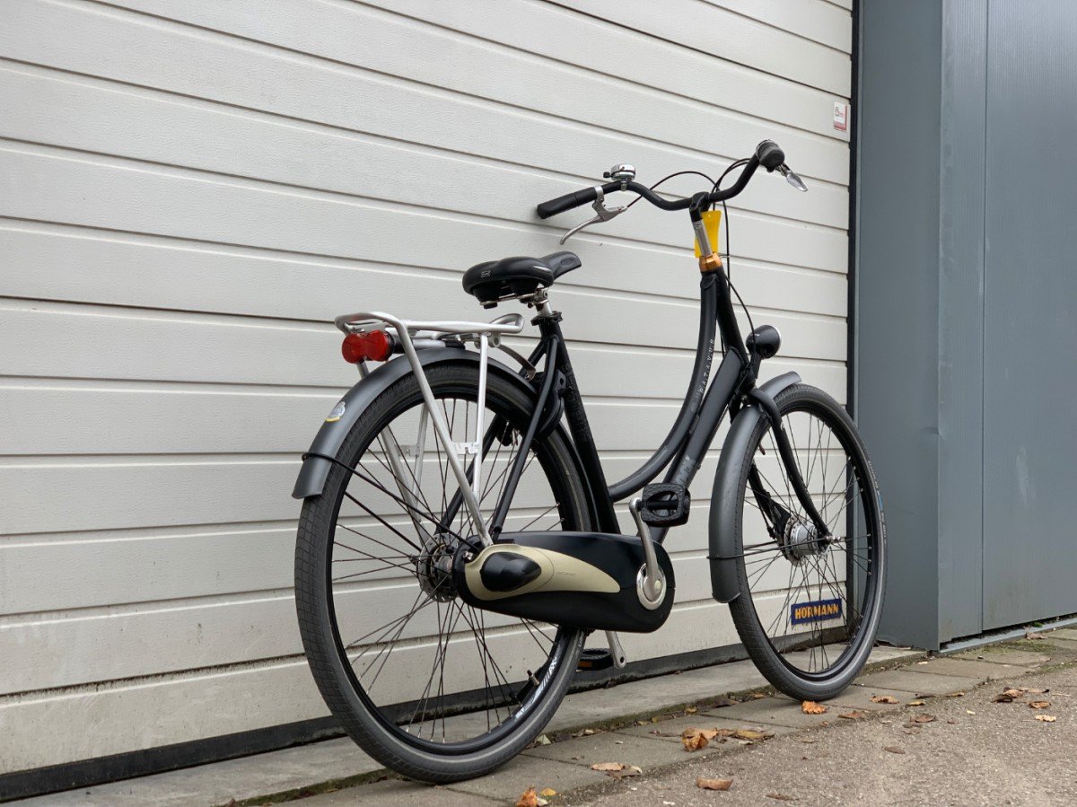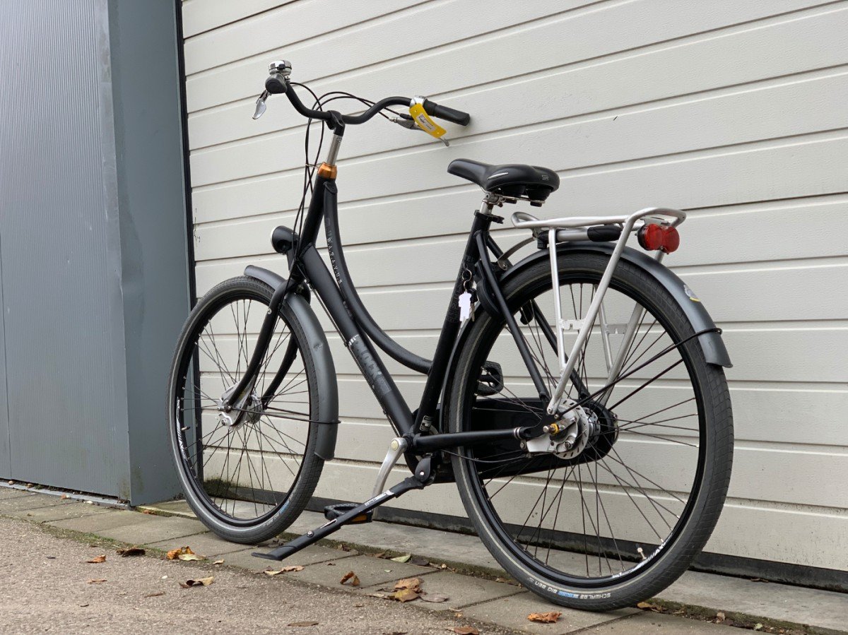 Robuuste stadsfiets met 3versnellingen, handrem voor en terugtraprem.