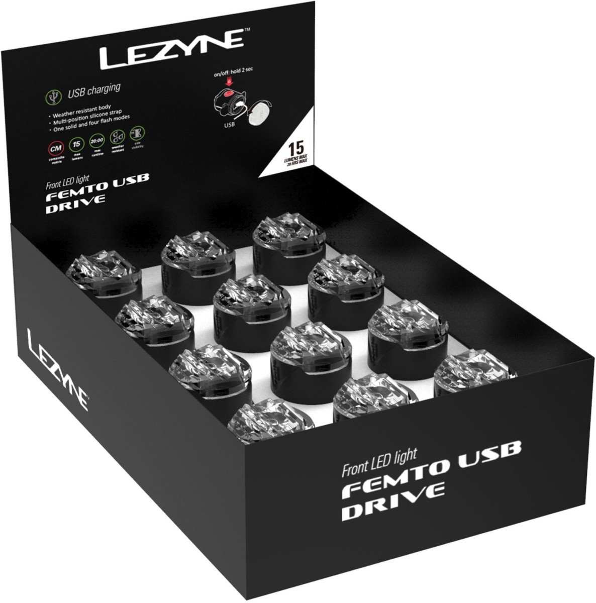 Toonbank box met 24 stuks van de nieuwe LEZYNE FEMTO USB koplamp.