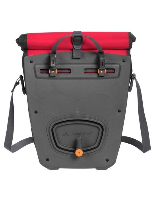 VAUDE – toegewijd om de wereld een betere plek te maken. VAUDE fabriceert milieuvriendelijk en eerlijke buitensportproducten. De Aqua back is dankzij de wikkelsluiting in grootte verstelbaar en absoluut dicht af te sluiten. Deze fietstassen worden middels het QMR 2.0-systeem en stabiele achterplaat rechts en links op de achterdrager bevestigd, zijn middels gemakkelijk te bedienen handwielen verstelbaar en laten zich ook weer snel afnemen. Met een fietsslot kunnen ze direct aan QMR-haken vergrendeld worden. Set bestaat uit twee enkele tassen.